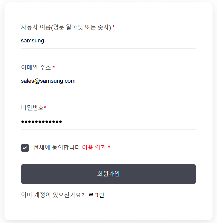 *모든 필드를 입력 후 클릭하여 회원 계정을 생성합니다.