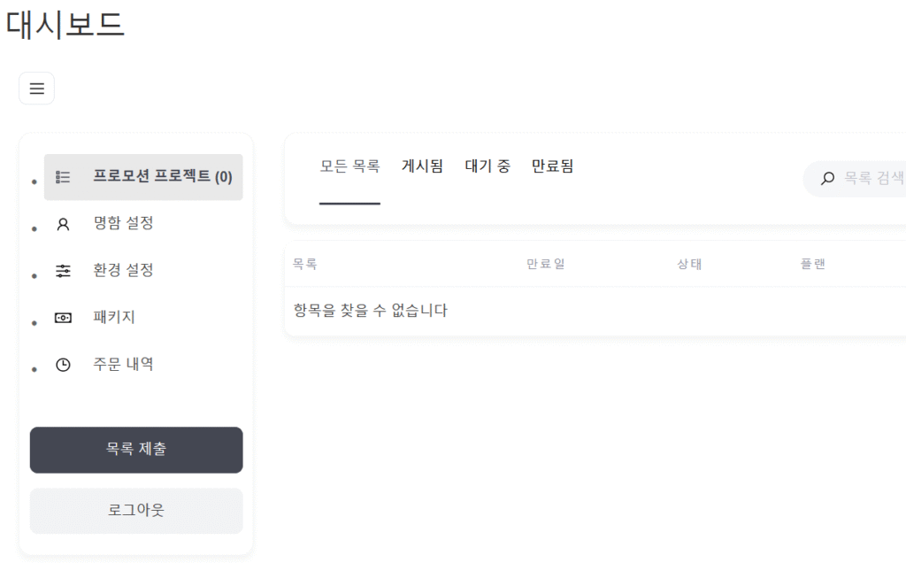 회원가입 혹은 로그인 후, 시스템은 자동으로 대시보드로 이동합니다.
