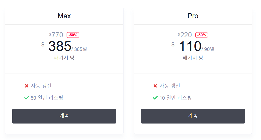 명함정보를 입력 후, 대시보드 화면 하단의 “목록 제출” 버튼을 클릭하여 패키지 선택하세요.