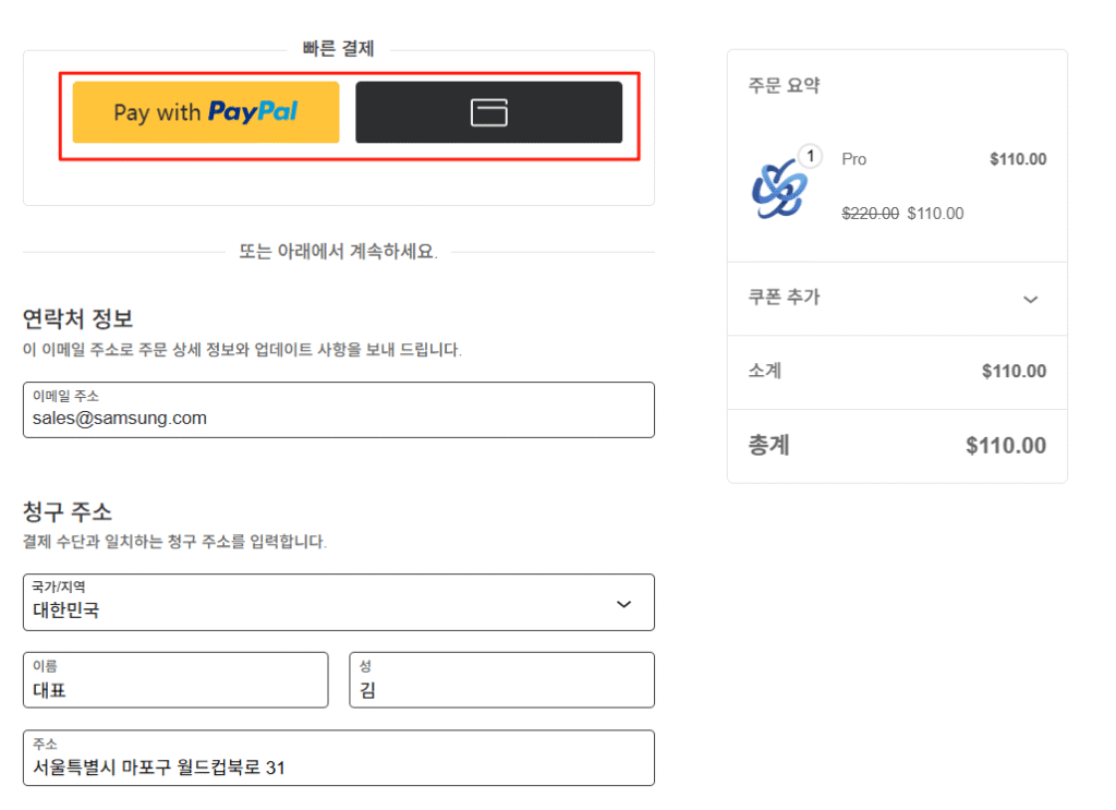 국제 결제 및 해외 사용자는 PayPal을 통해 손쉽게 결제할 수 있습니다.