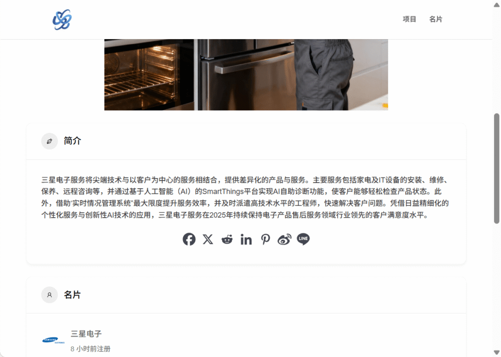 중국어 프로젝트정보 입력 페이지에서 직접 제품/서비스명, 설명, 카테고리, 위치, 미디어 등을 수동으로 수정할 수 있습니다.