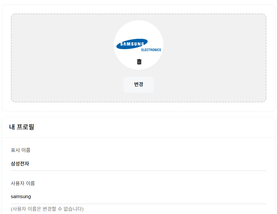 정보 변경이 필요할 경우, 대시보드의 명함 설정에 들어가 정보를 수정한 뒤, 저장하면 됩니다.